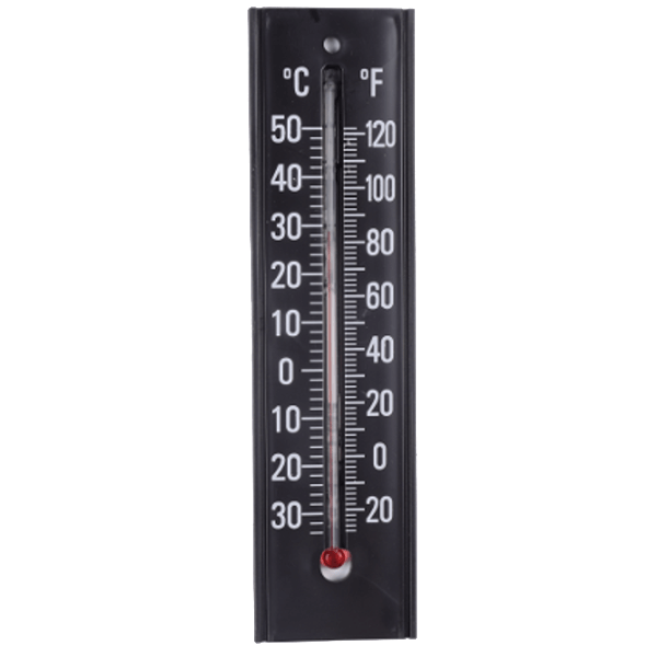 Műanyag fekete hőmérő, mérete: 19,5x5 cm
