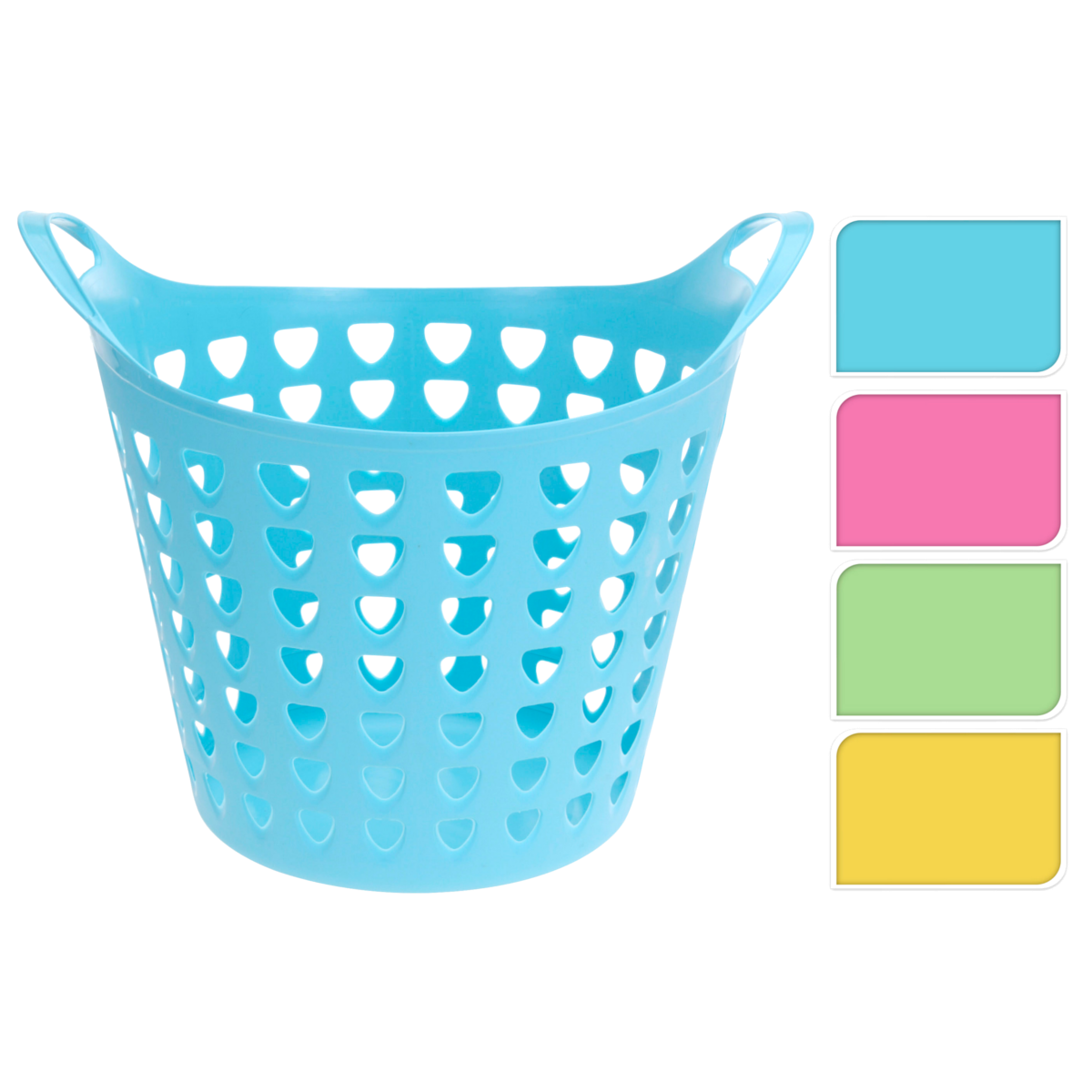Lyukacsos, rugalmas, 26 literes műanyag kosár. Átmérő 45 cm, magasság 40 cm.