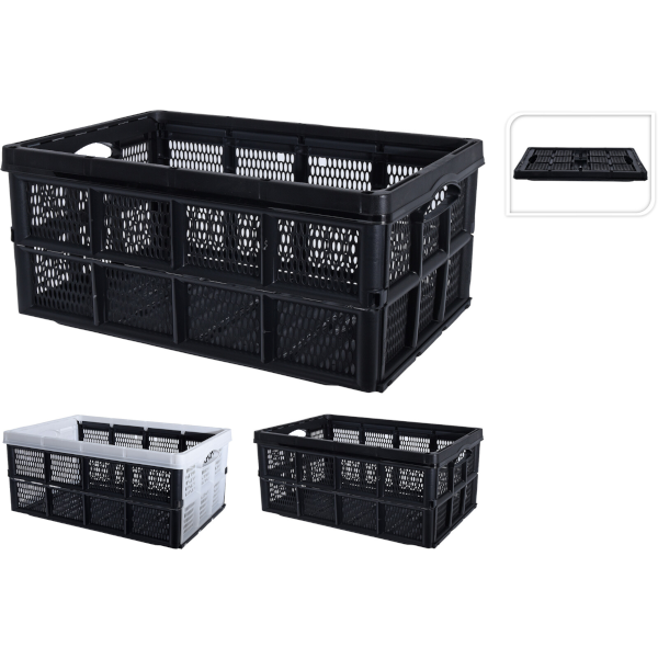 Összecsukható rekesz, anyaga: műanyag. Űrtartalom: 60 L. Maximális teherbírás: 35 KG. 2 féle színben értékesítjük.