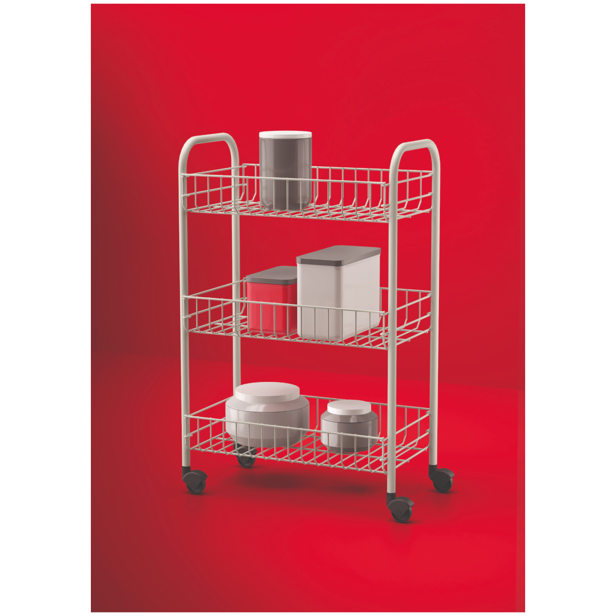 A Siena háromemeletes gurulós állvány praktikus megoldás, ha átlátható és könnyen mozgatható tárolóra van szükséged. Karcsú kialakításának köszönhetően kis alapterületen is jól elfér, a görgők pedig lehetővé teszik, hogy gyorsan áthelyezd oda, ahol éppen szükség van rá. Letisztult fehér színe jól illeszkedik különböző lakóterekbe.