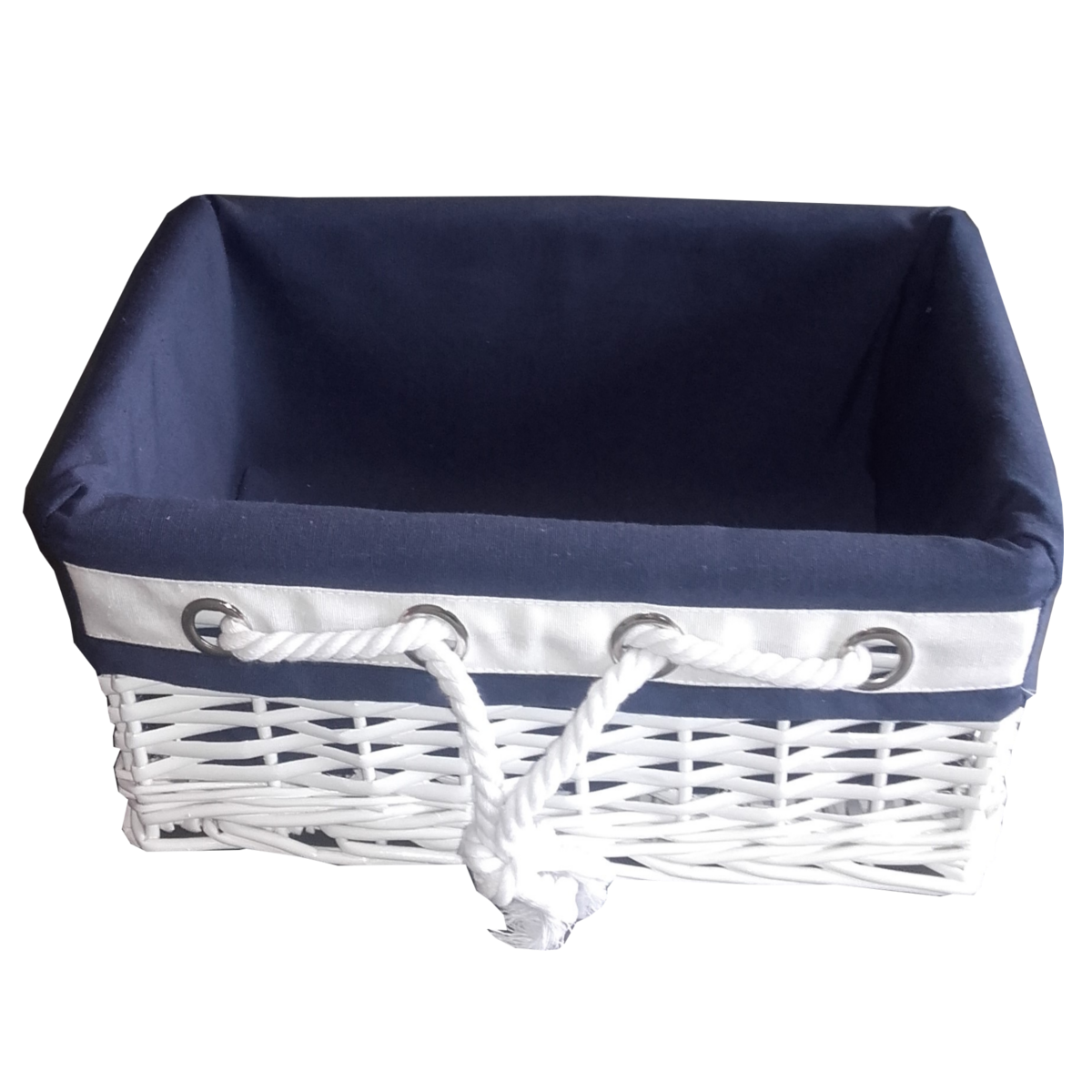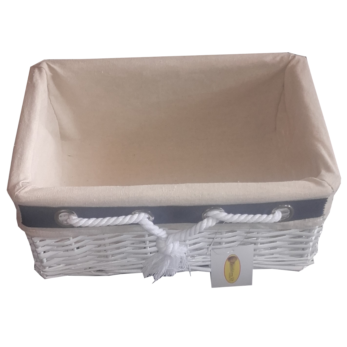 Tárolókosár m-es vessző/textil szögletes fehér - Kosár