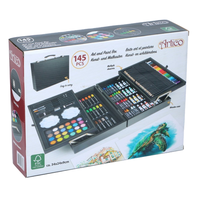 Művész szett táskában. A táskában lévő mindegyik tárgynak van saját rovátkája, érdemes őket ezekbe visszahelyezni használat után. A professzionális hordozótáskával kényelmesen, egy helyen tudja tárolni a festés elkezdéséhez szükséges összes kelléket. A szettben található festékeket különböző technikákkal és száradási idővel kell használni. Vigyázzon, hogy a festékek szembe és/vagy szájba ne kerüljenek.