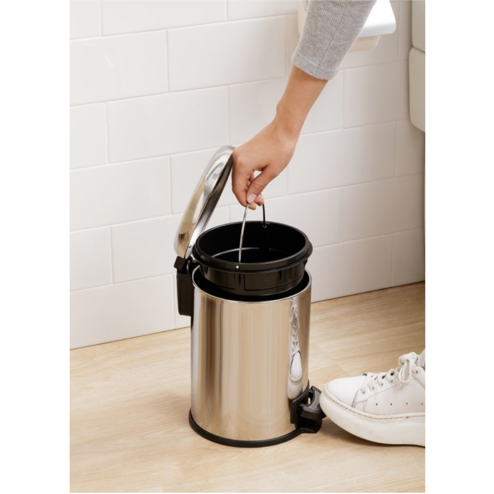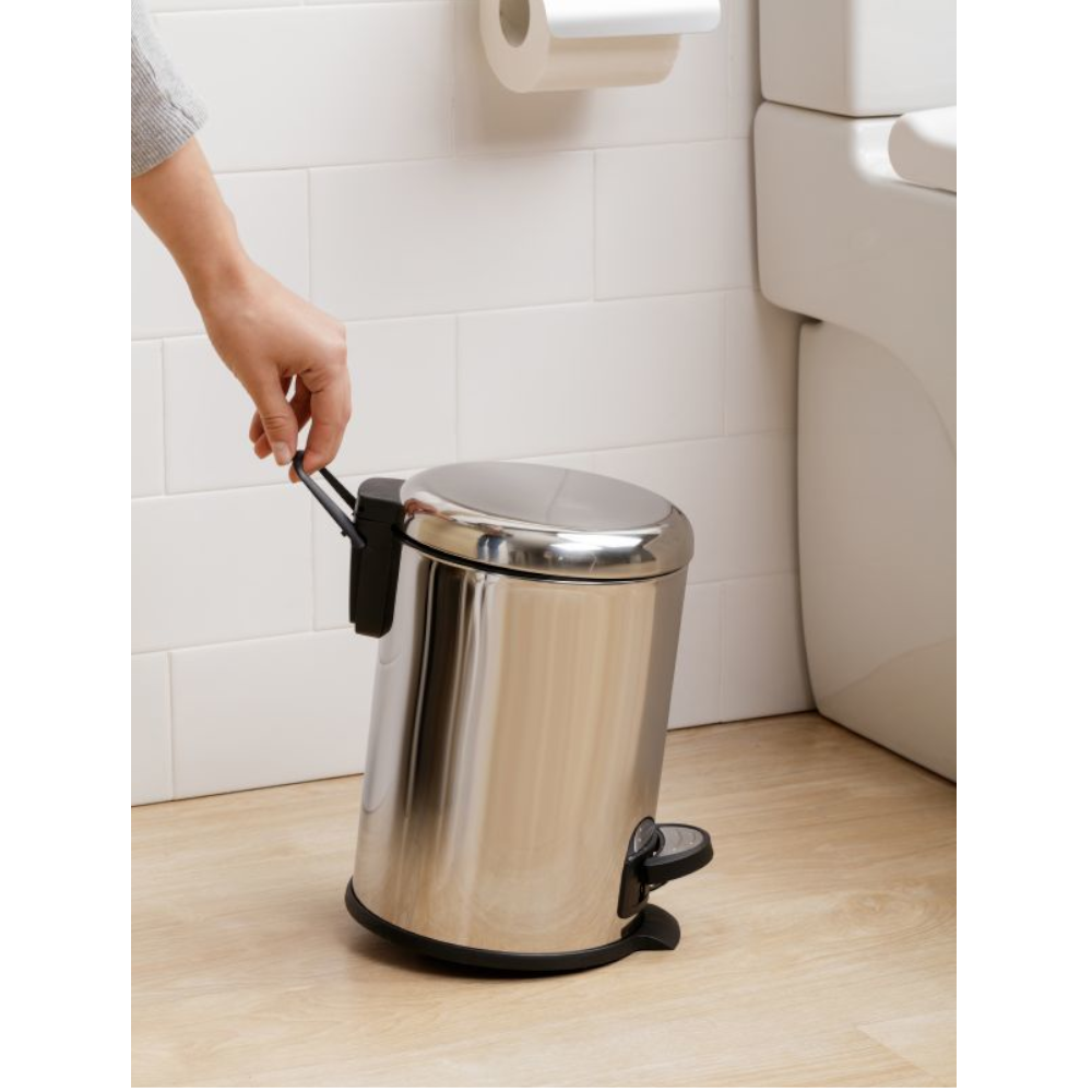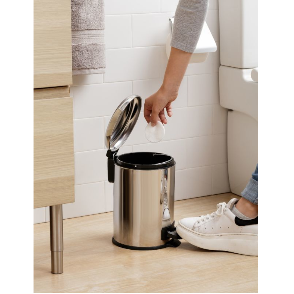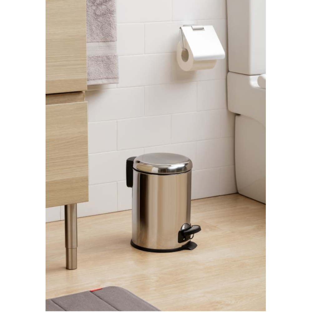 Fürdőszobai pedálos szemetes 3L, rozsdamentes acélból, így tartós és könnyen tisztítható. A lecsapódásgátlóval, pedig zajmentesen csukódik le a fedél. Letisztult dizájnjával tökéletes kelléke lehet bármely fürdőszobának, hiszen könnyen illeszthető bármely stílusú bútor mellé.
