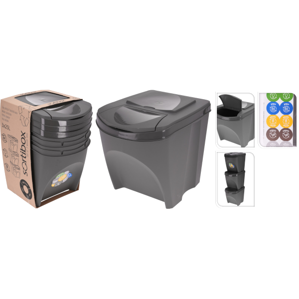 Szelektív hulladékgyűjtő szett, anyaga: polipropilén. 3 db/ szett kiszerelésben értékesítjük.