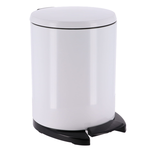 Fürdőszobai szemetes, 6 literes, kerek, fehér, fém, soft-close.