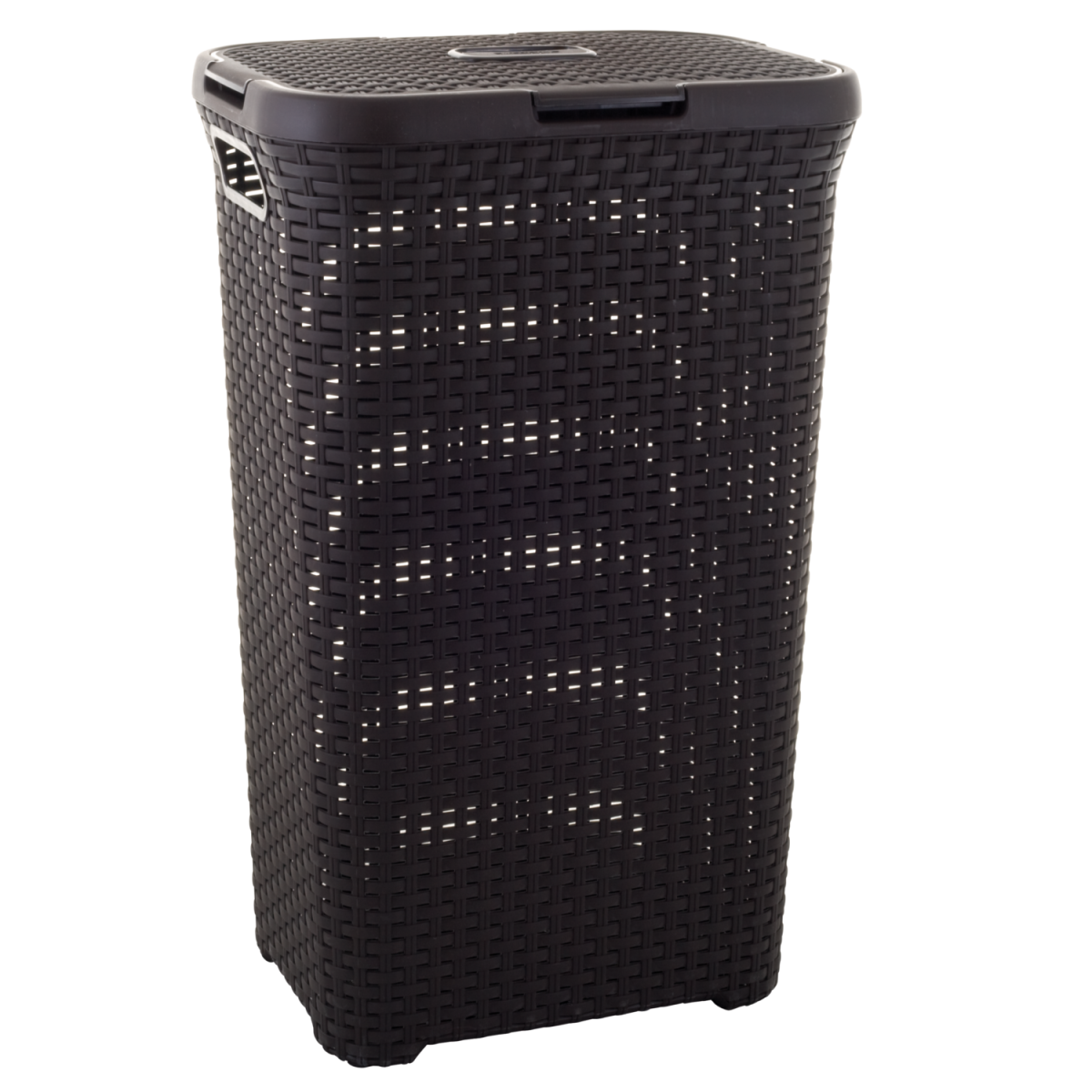 A "natural style" termékvonalba tartozó, rattan stílusú szennyestartó kosár tökéletes megoldás az esztétikát és kényelmet keresők számára. vonzó kinézete lehetővé teszi a beltér legújabb trendek szerinti kiegészítését. a kosár fedele kétféleképpen rögzíthető, ezáltal bármely irányba nyitható. a kosár könnyű, azsúr szerkezete megfelelő szellőzést biztosít. Mérete: 448x341x615 mm.