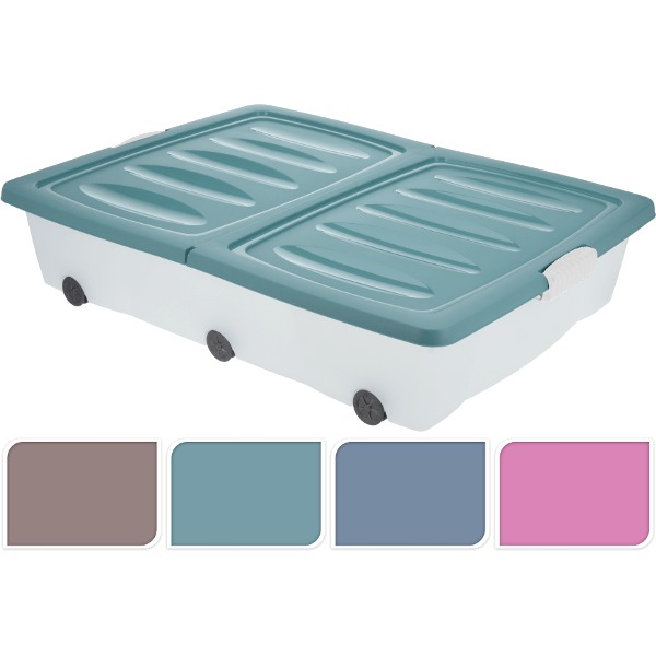 mérete: 80X60X17CM,űrtartalom:. 55 liter, 4 féle színben (old rose/pastel petrol/pigeon blue/taupe)/anyaga: műanyag