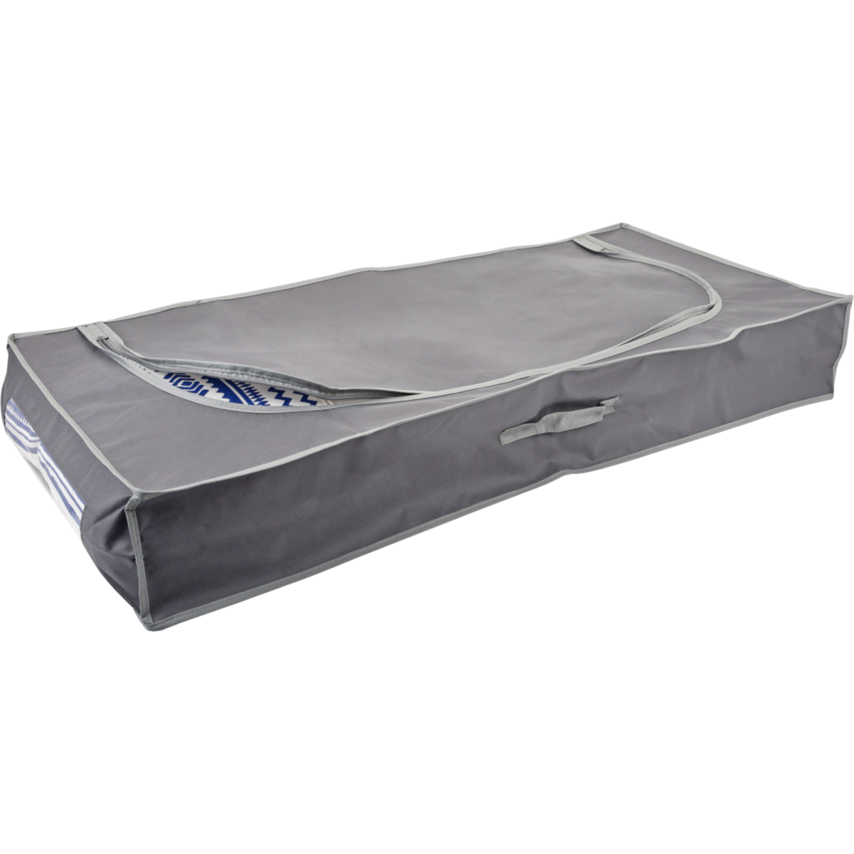 Az ágy alatti tárolótáska sötétszürke színben praktikus megoldás a nehezen kihasználható terek rendszerezésére. Alacsony kialakításának köszönhetően könnyedén elfér az ágy alatt, miközben segít átláthatóan tárolni a ritkábban használt tárgyakat. A cipzáras záródás védi a tartalmat, a betekintő ablak pedig gyors áttekintést biztosít. A tárolótáska tisztítása száraz ruhával javasolt.