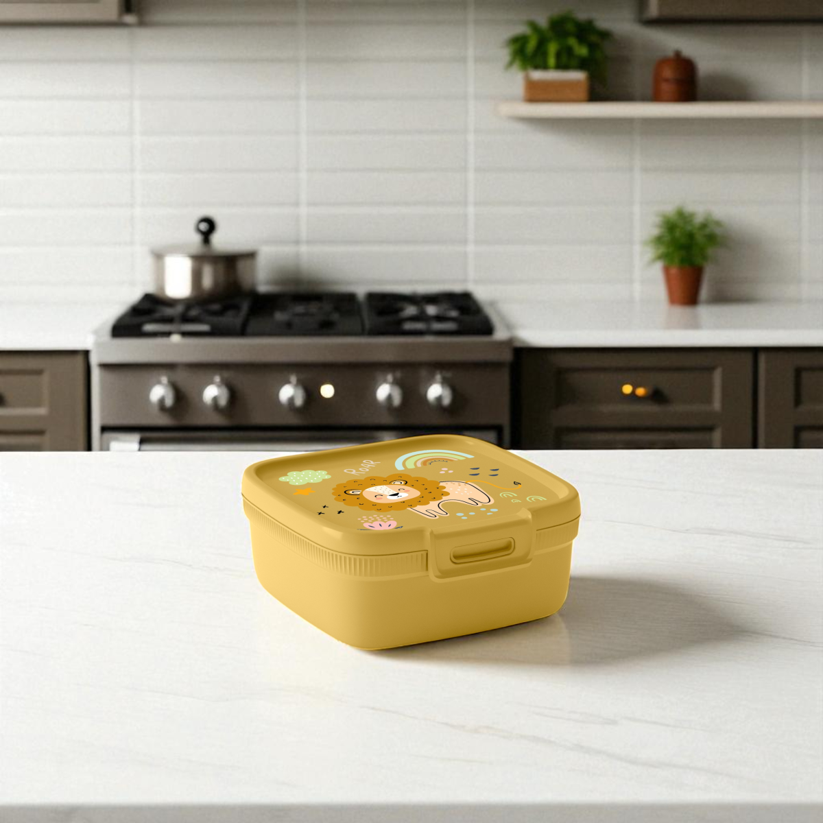 A Curver Snap Box 0,9 literes multifunkciós tárolódoboz praktikus megoldás a mindennapokra. A sárga színű, kedves oroszlán mintával díszített doboz ideális választás gyerekeknek uzsonnásdobozként, de használható kisebb ételek, snackek vagy egyéb apróságok tárolására is.