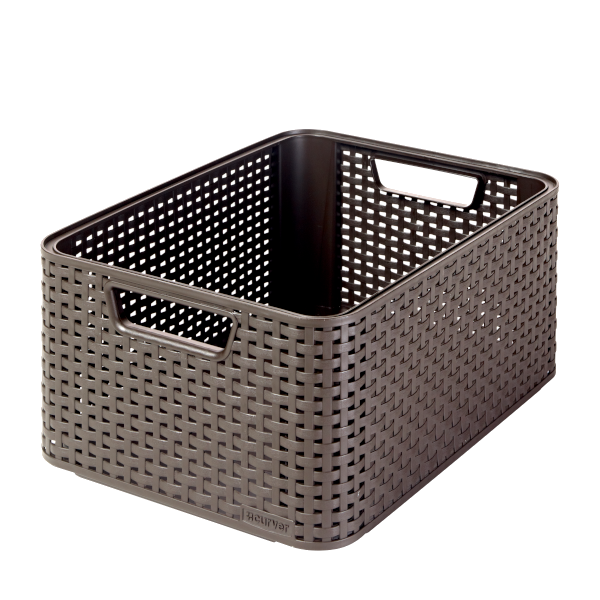 A stílusos rattan kosár tökéletes alternatívája valódi, fonott rattan kosaraknak. A modern design illeszkedik a mind a hálószobába, mind pedig fürdőszobába és nappaliba is. Az anyag, amelyből a kosár készült biztosítja, hogy a benne tárolt elemek nem sérülnek, szennyeződnek.