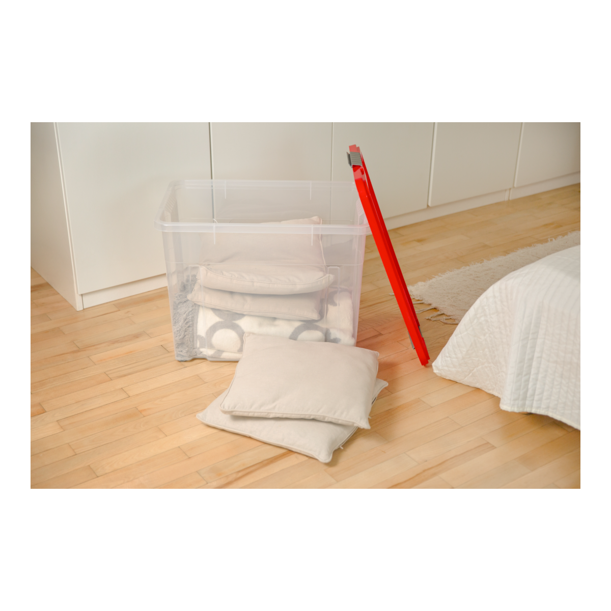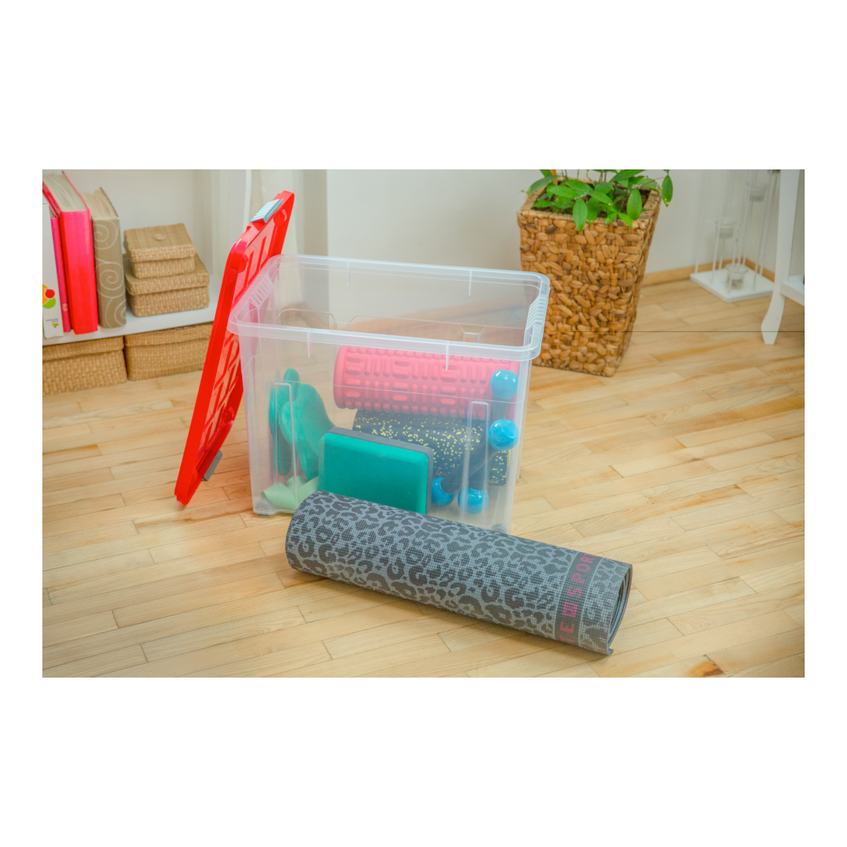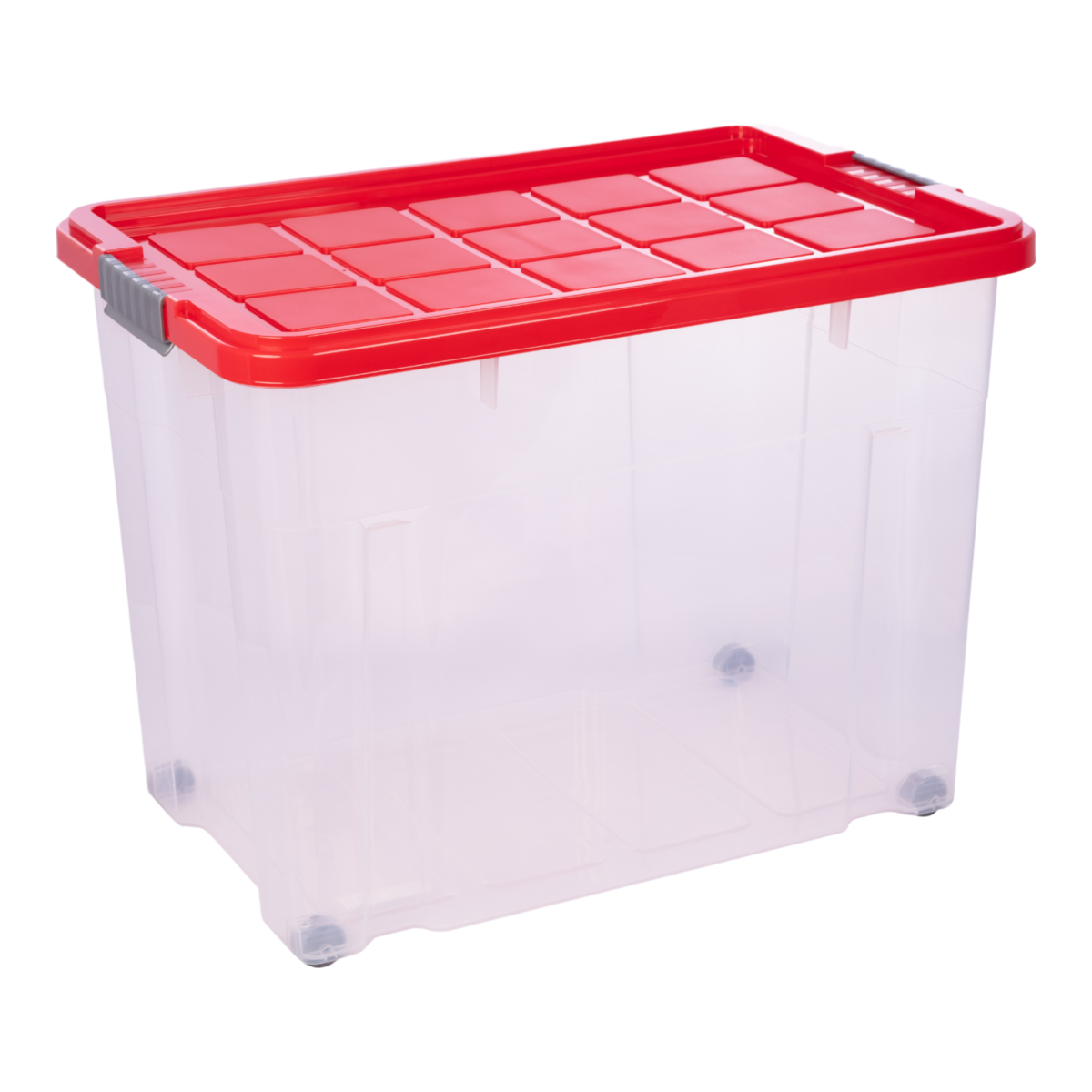 Tárolódoboz maxi fedéllel és kerékkel, 60,5x34x46 cm méretben, különböző színű lezárható tetővel.