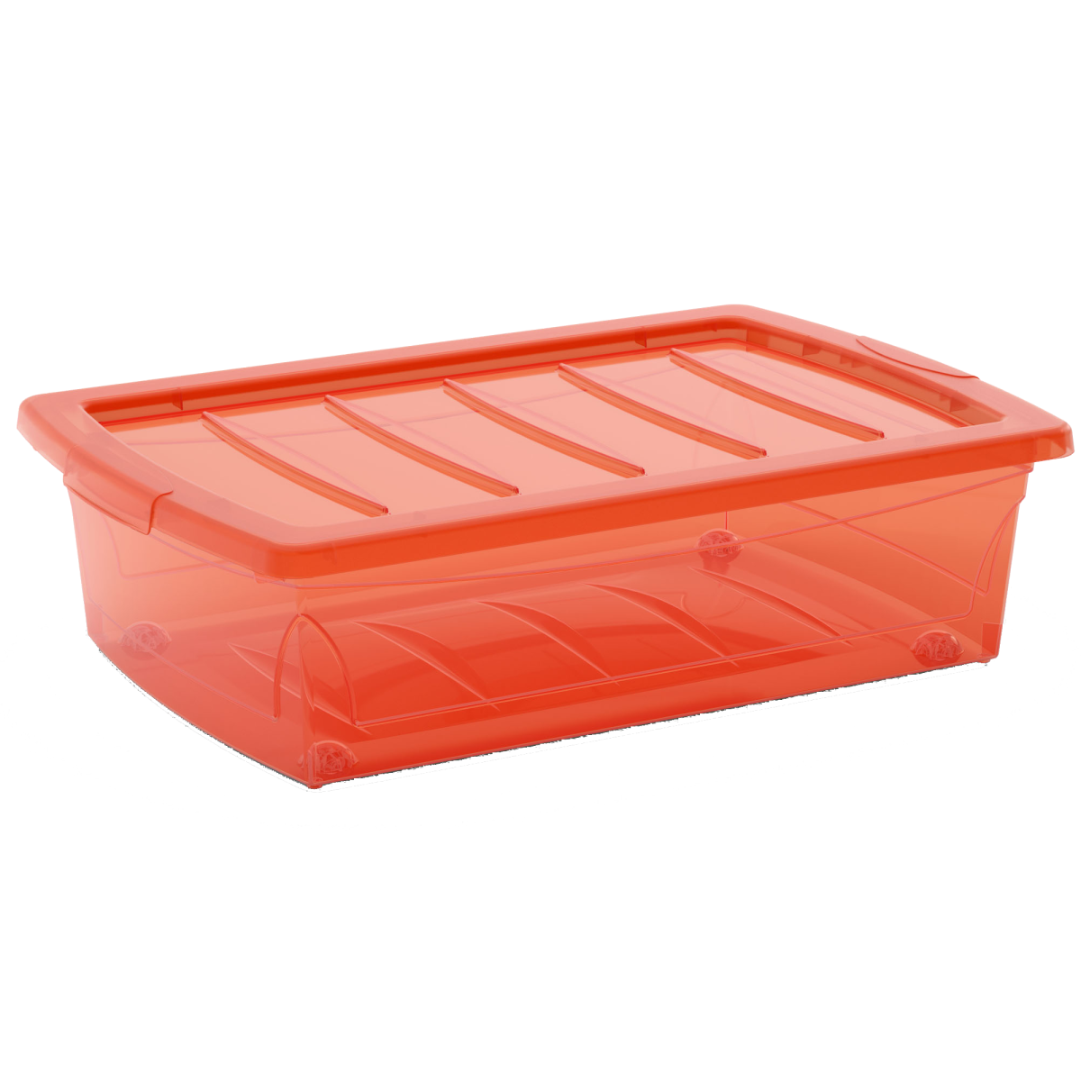 30 literes műanyag tároló doboz, mely ideális otthonra és irodába egyaránt. Levehető tetővel és kerekekkel a könnyebb mozgatás érdekében. Narancs színben. Mérete: 59x39x16cm.