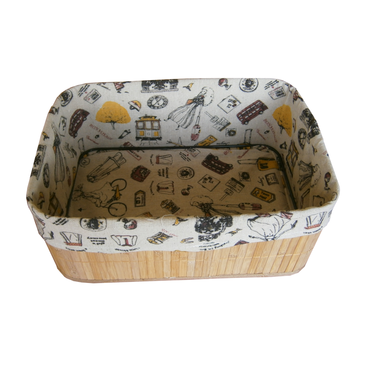 Bambusz és textil tároló, mérete: 33x23x14 cm.