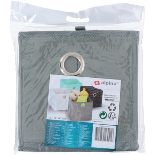 Tároláshoz, rendszerzéshez, csoportosításhoz használható tároló doboz 15x15x15cm-es méretben, szürke színben. Összehajtható kialakítása a használaton kívüli, helytakarékos elhelyezést teszi lehetővé.