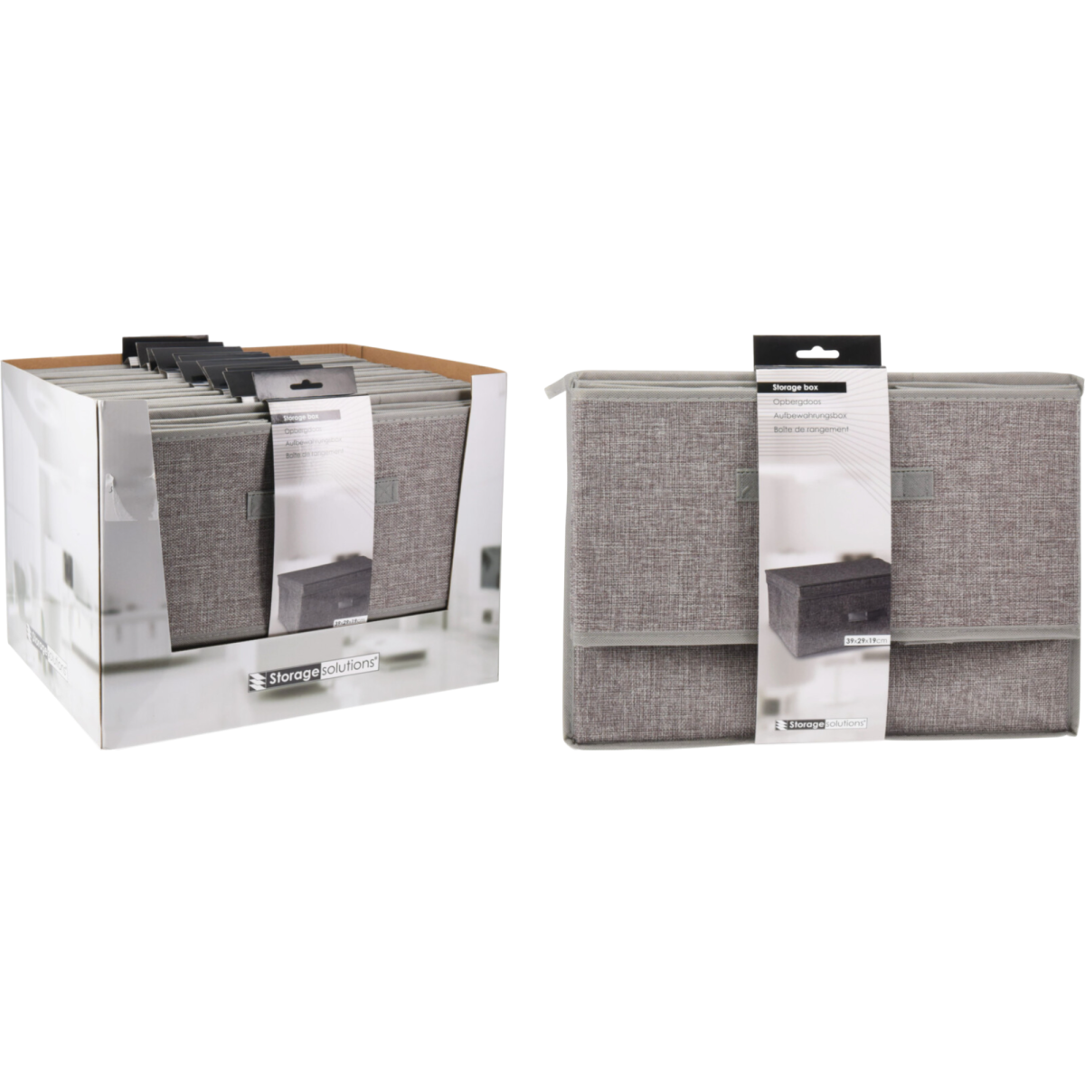 Tárolódoboz fedéllel 39x29x19cm világosszürke poliészter