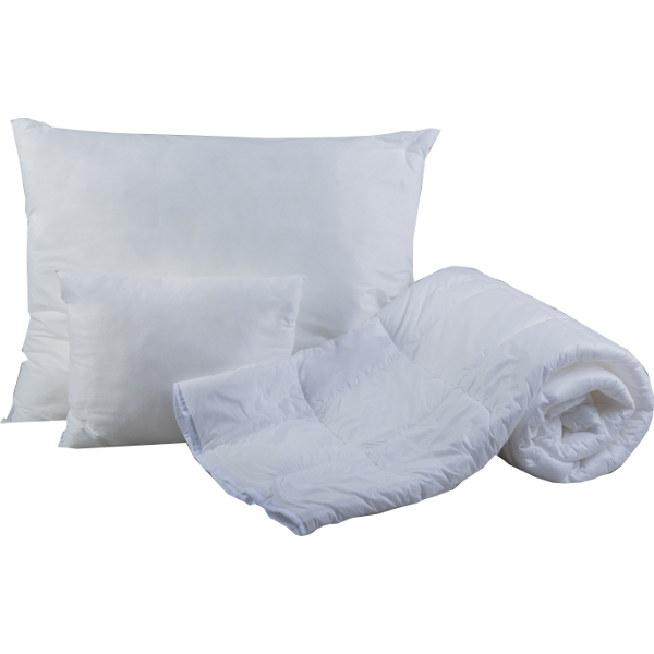 Polysoft nyári szett "BASIC" 3-részes: paplan 140x200cm 800g, nagypárna 70x90cm 800g, kispárna 40x50cm 280g, fedőanyag: 100% poliészter nem szőtt anyag, töltet: 100% poliészter.
