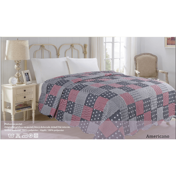 100% poliészter americano ágytakaró. Mérete 240x220 cm.