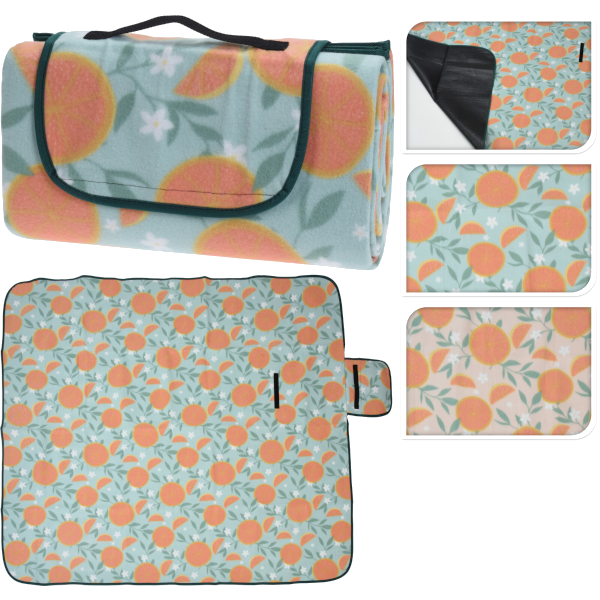 Piknik pléd, az egyik oldala filc a másik vízálló felületű. Mérete kinyitva:130x150 cm. 2-féle színben (zöld/narancs) értékesítjük.