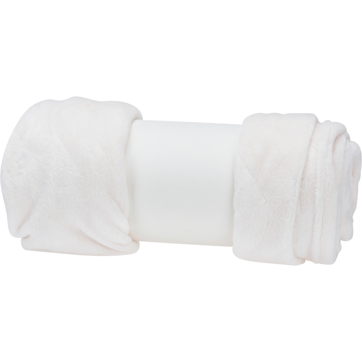 Fehér színű takaró 160x130cm méretben, 100% poliészter anyagból.