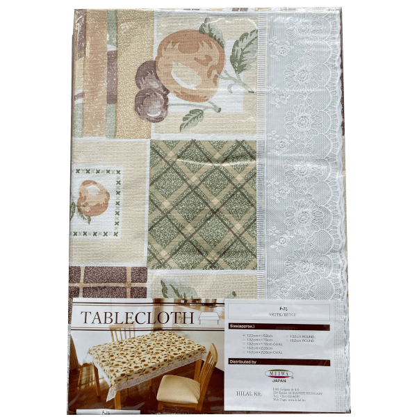 Kész, darabra vágott PVC terítő konyhai és virágos dekorral. Mérete: 122x152cm.