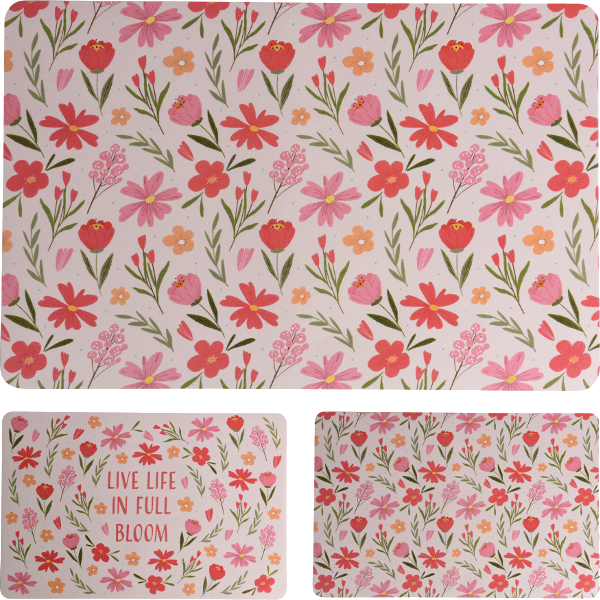 Tányéralátét virág mintával. Mérete: 43,5x28,5cm