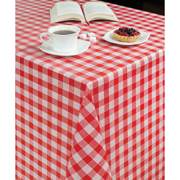 Viaszos vászon terítő, 1,4 m széles, piros/fehér kockás.