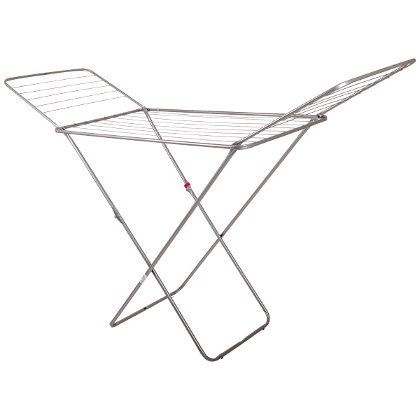 Kétszárnyú ruhaszárító, gyermekbiztos acélcső vázzal, illetve erős szárogatórudakkal, szárogató felület: 18m, maximum 15kg teherbírás.