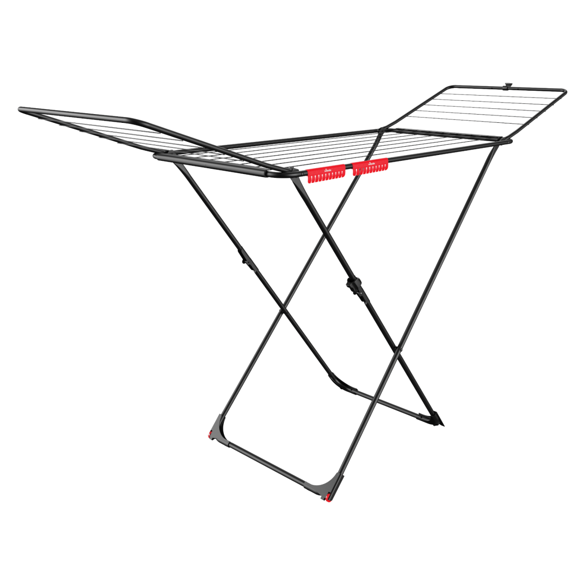 Tedd kényelmesebbé a teregetést a Vileda Universal Ultimate X-lábú ruhaszárítóval! A praktikus kialakításnak és az állítható szárnyaknak köszönhetően rugalmasan használható, akár kisebb, akár nagyobb mennyiségű ruha szárításához. Két zoknitartóval, így a teregetés és leszedés is gyorsabbá válik. Az összesen 18 méter hosszú szárítófelület elegendő helyet biztosít, a lehajtható szárnyak és a kompakt tárolási lehetőség pedig megkönnyítik a mindennapokat.