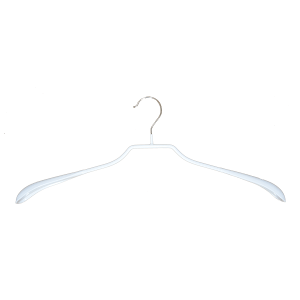 Top Modell széles vállú női gardrób vállfa nikkelezett acél, csúszásmenes fehér színű műanyagbevonattal, forgófejjel, gallérvédelemmel Mérete: 40 cm