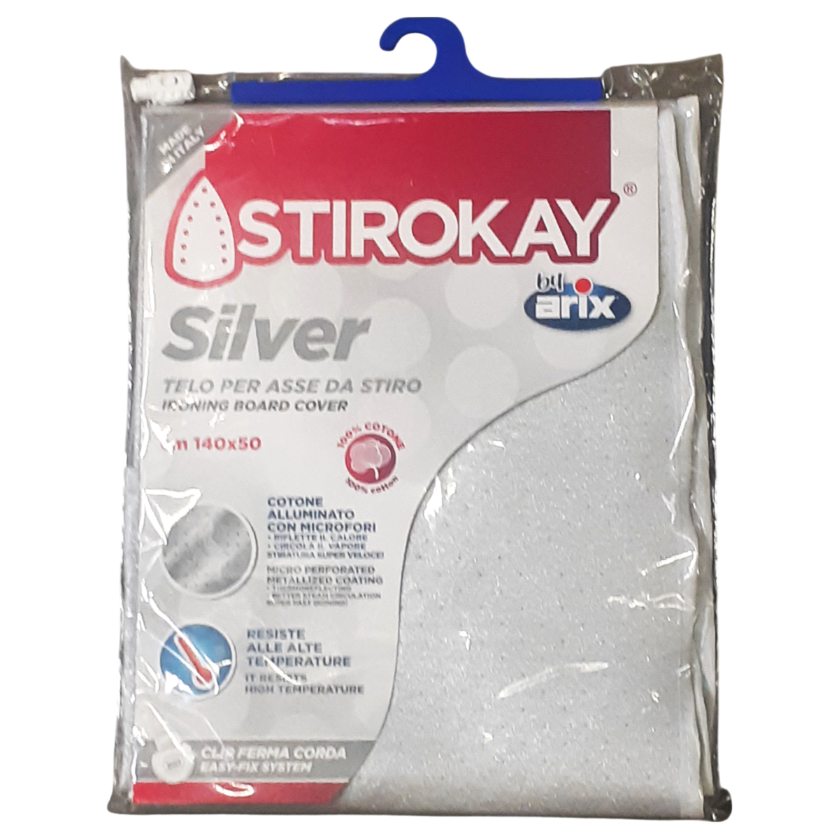 Teflonos vasalóállvány huzat 140x50 cm-es méretben. A fémezett bevonat visszaveri a hőt, ami gyorsabb vasalást tesz lehetővé. A termék nem mosható!
