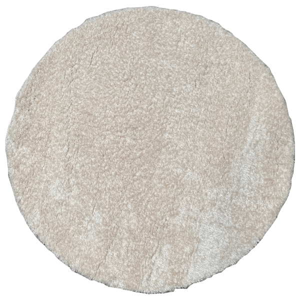 Puffy shaggy kerek szőnyeg, 100% polyester, a szőnyeg hátulja jutából készül.