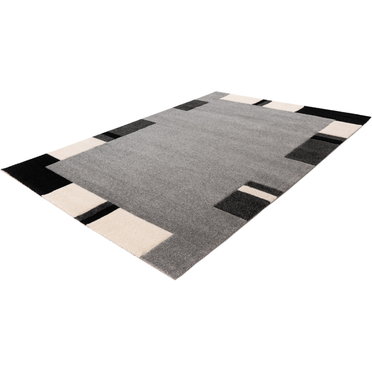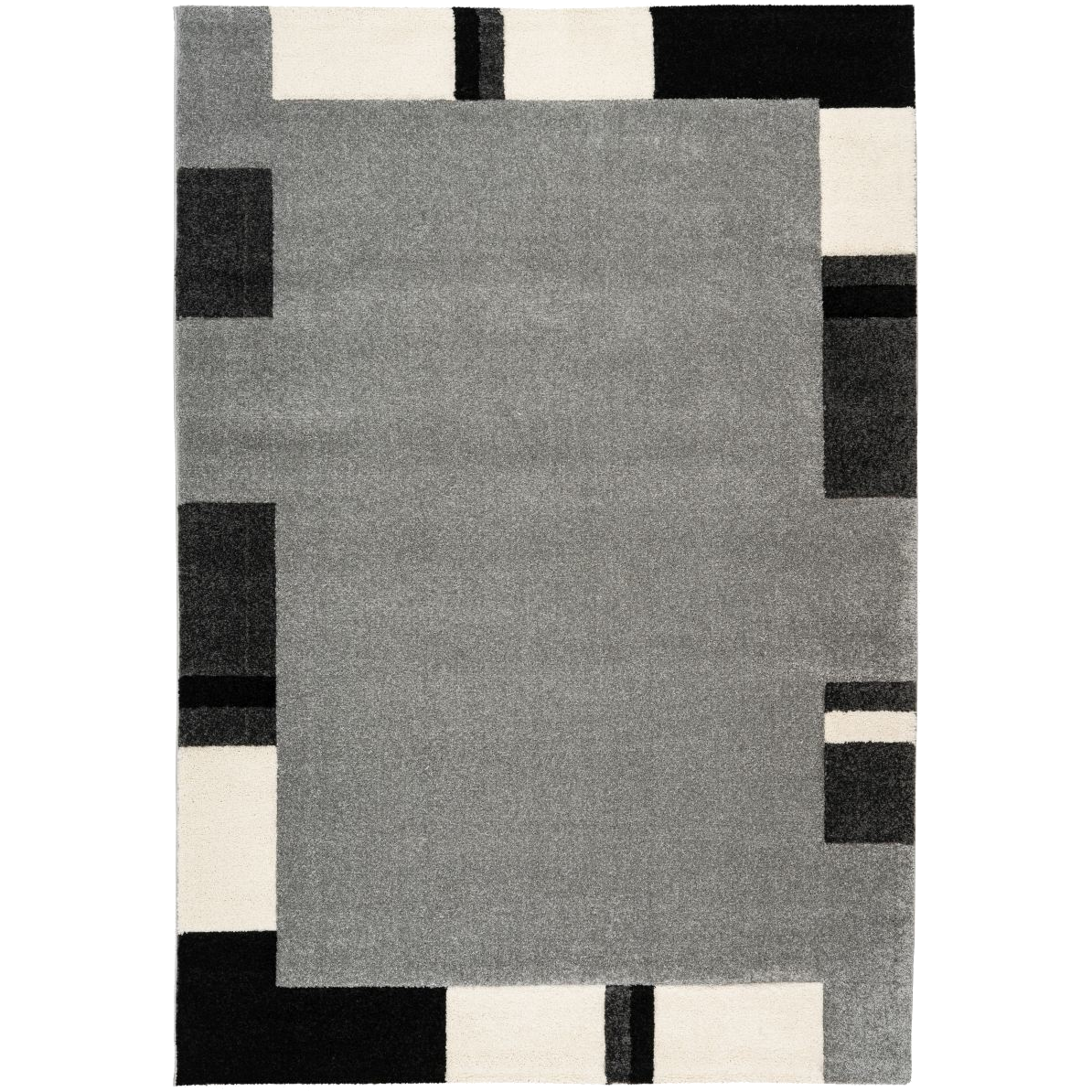 Géppel készített, modern mintás szőnyeg ezüst színben, 80x150 cm méretben.