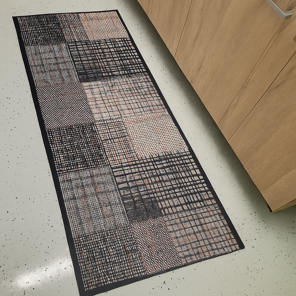 A Lima Blocks futószőnyeg modern és praktikus kiegészítője a konyhának. Négyzetes mintázatának köszönhetően különleges, geometrikus megjelenést biztosít, amely feldobja a helyiség hangulatát. Csúszásmentes gumis hátoldallal készült, így a helyén marad. Poliamid szálainak köszönhetően hosszabb ideig megőrzi formáját, és mosógépben is tisztítható 30 °C-on, kímélő programon.