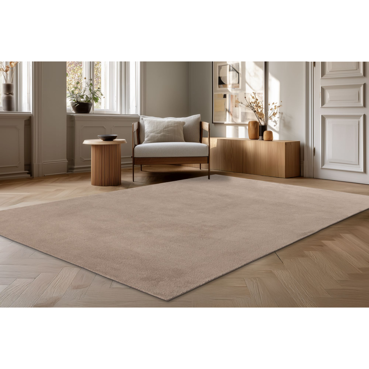 A Relax szőnyeg taupe árnyalata természetes, meleg tónust visz bármely enteriőrbe.