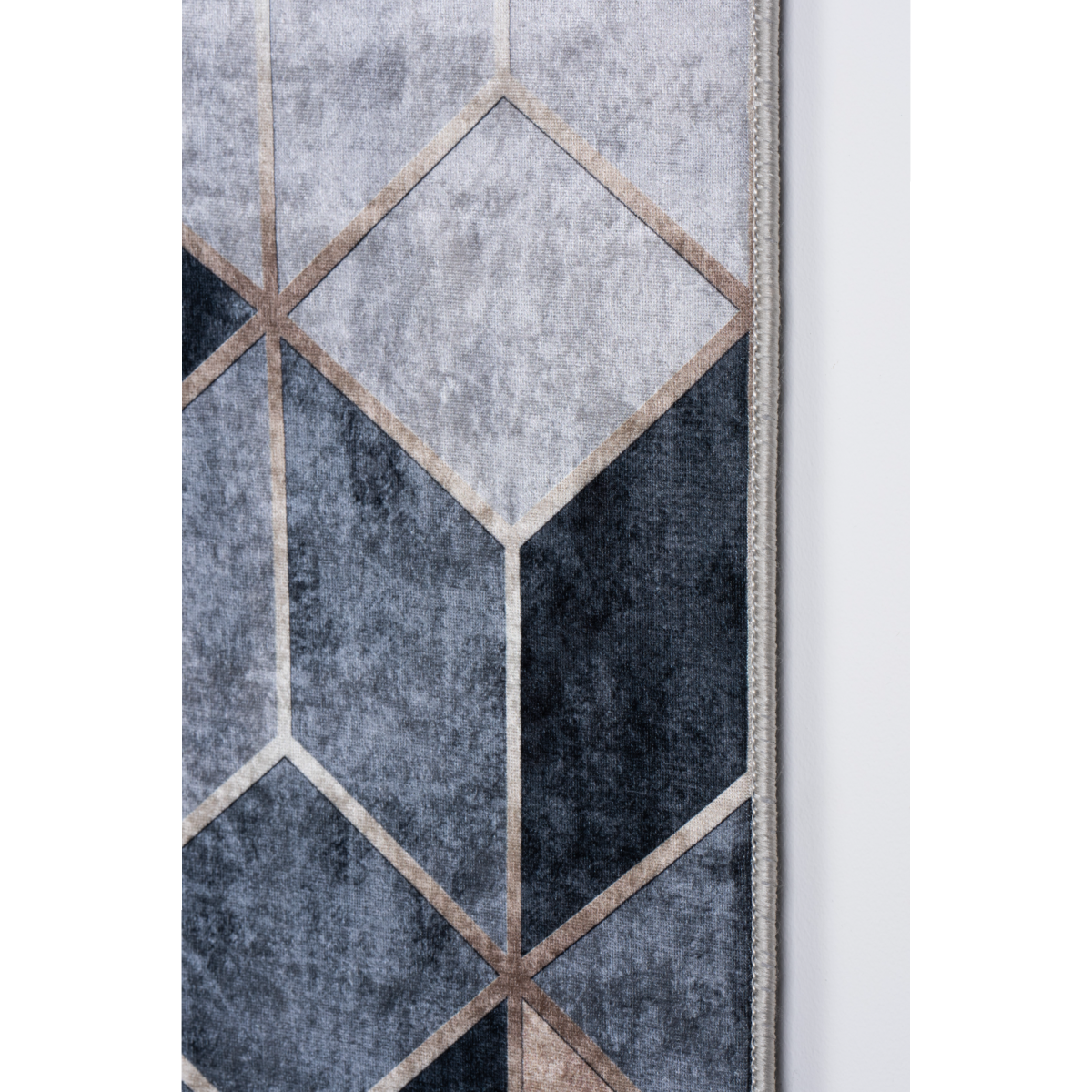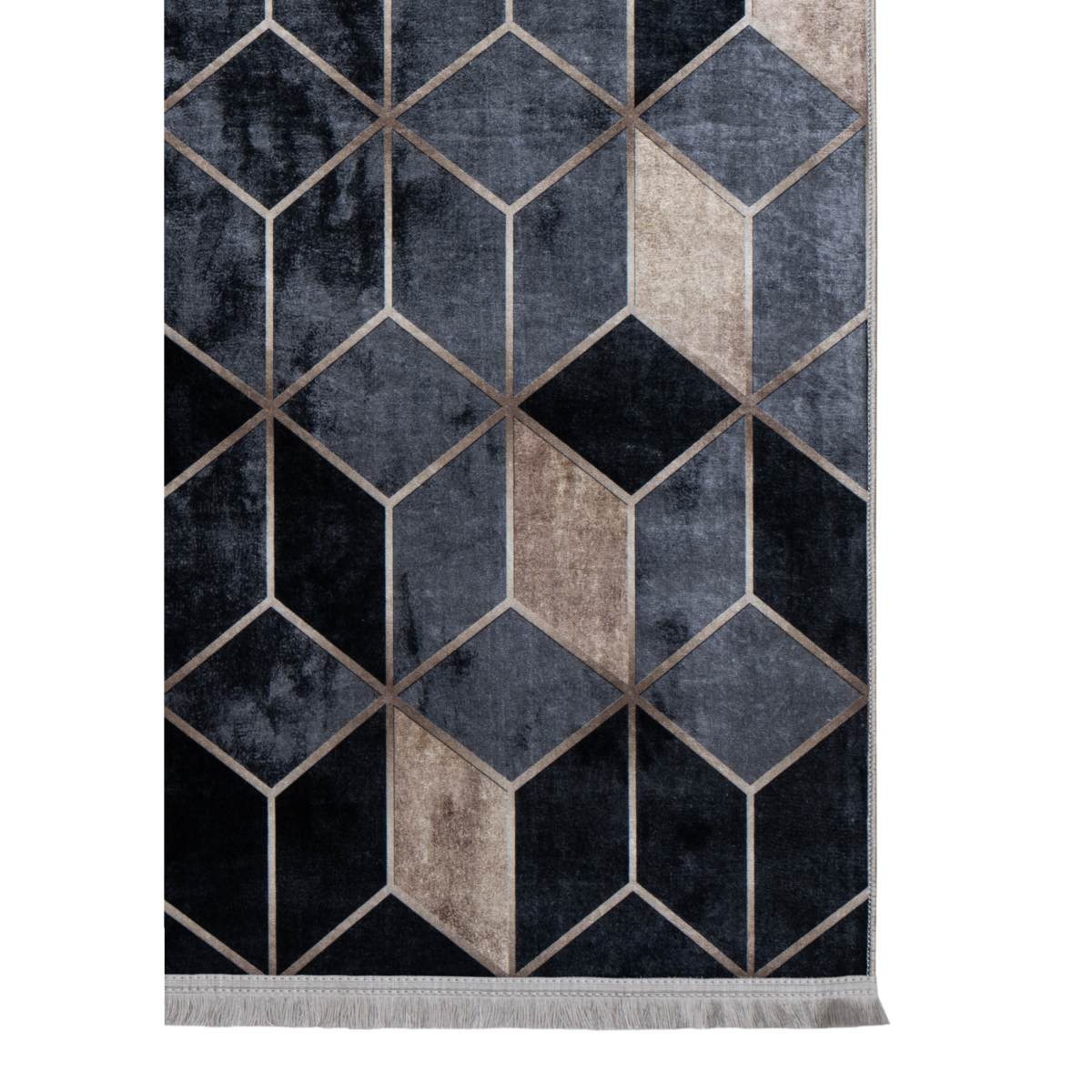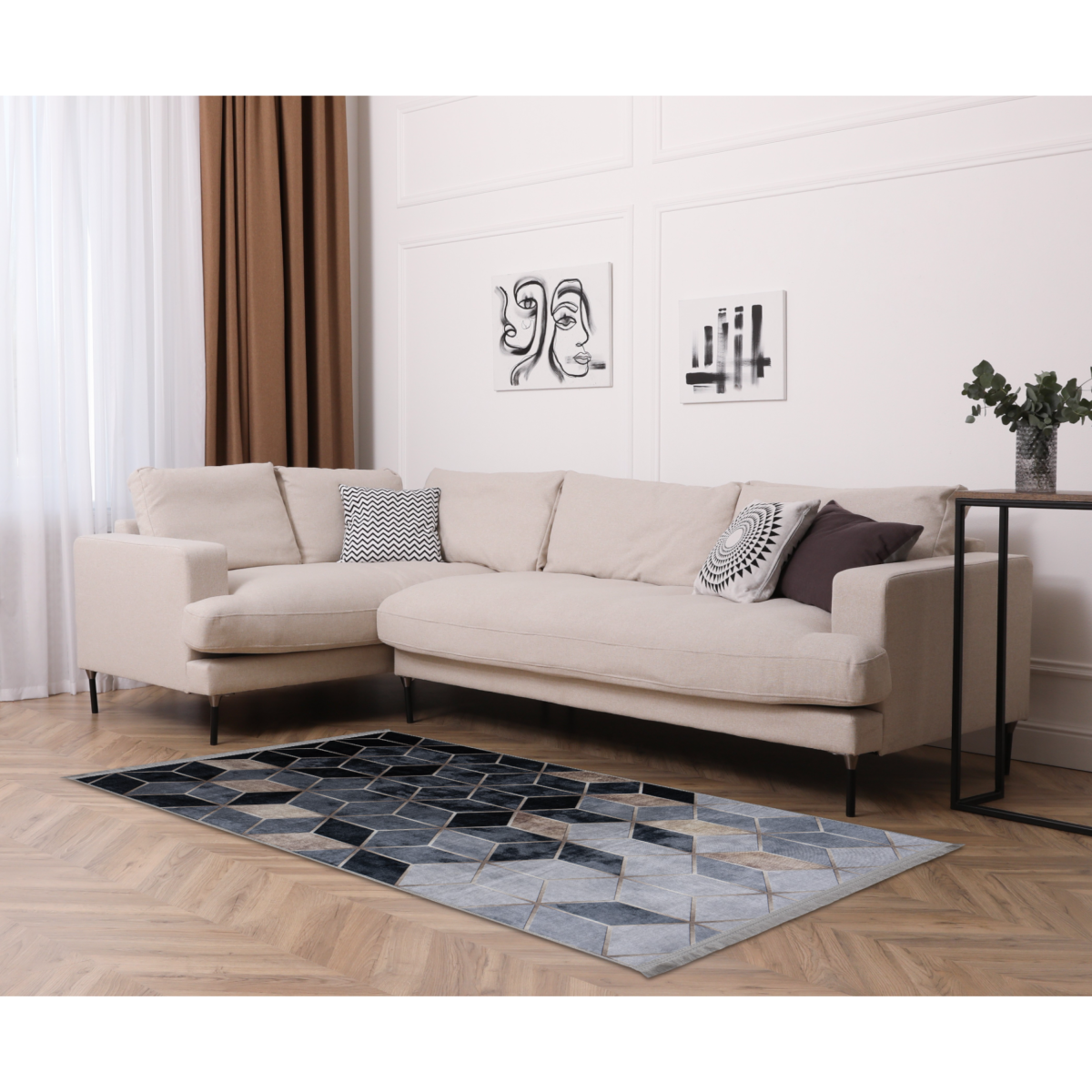 Frissítsd fel otthonod megjelenését az Arno szőnyeggel, amely fekete és kék színeivel, valamint geometrikus mintájával modern, lendületes hangulatot teremt.