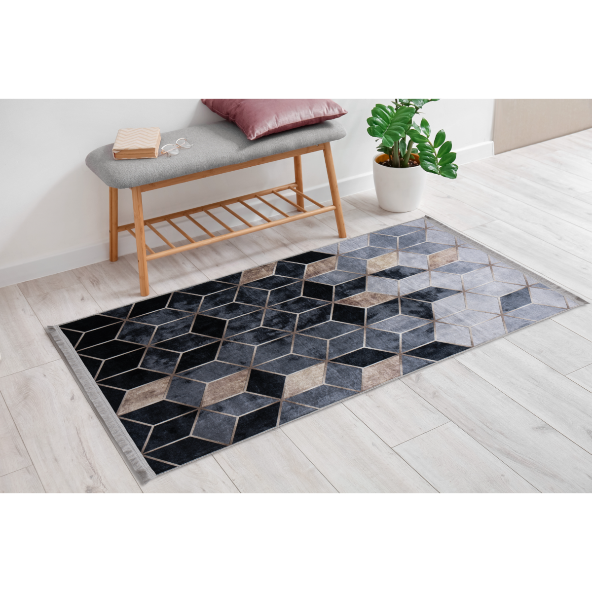 Frissítsd fel otthonod megjelenését az Arno szőnyeggel, amely fekete és kék színeivel, valamint geometrikus mintájával modern, lendületes hangulatot teremt.