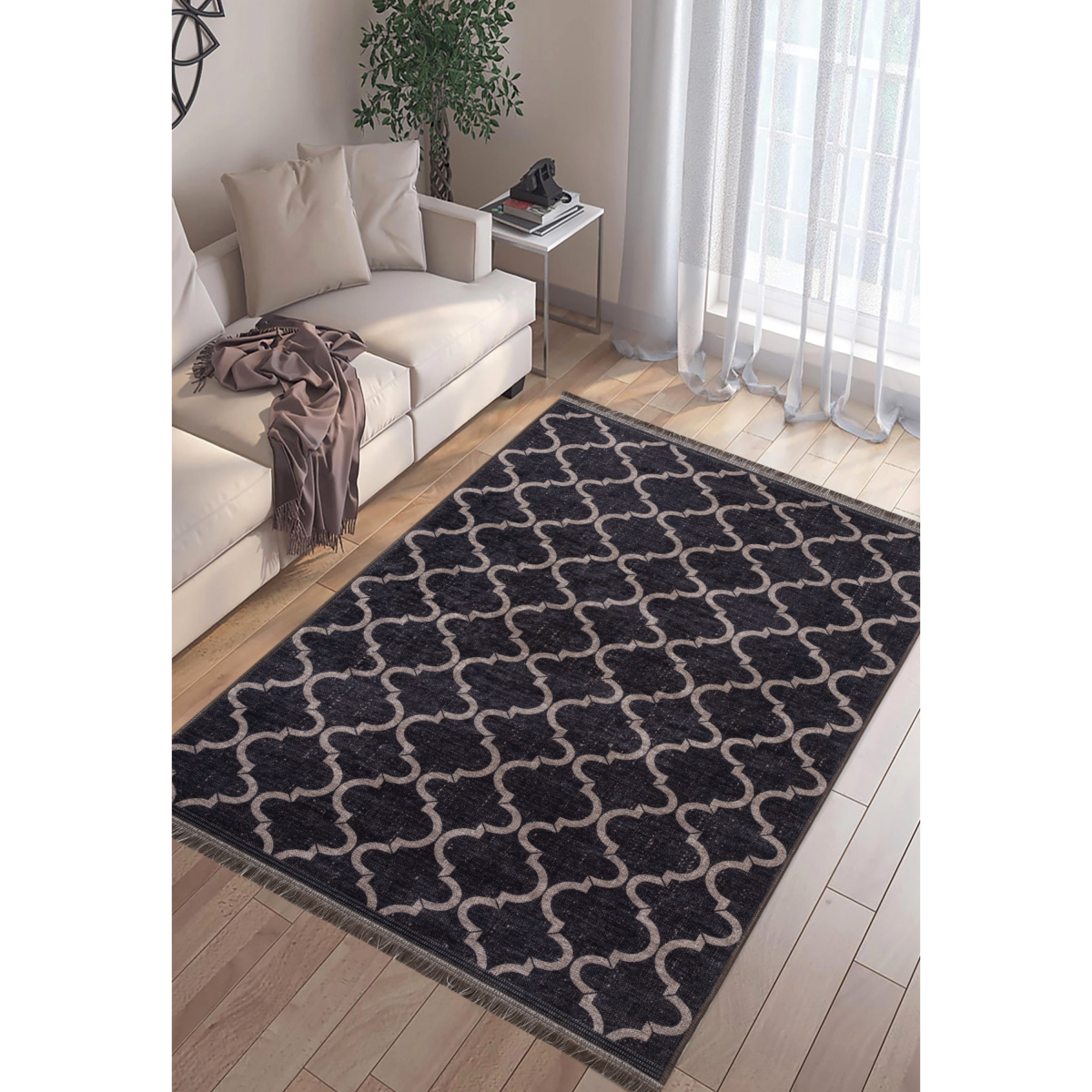 Dobd fel otthonod megjelenését a Salu szőnyeggel, amely fekete alapon geometrikus mintázatával modern, karakteres stílust teremt.