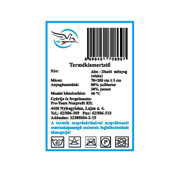 PRO TEAM SZŐNYEG 70X200 FEHÉR