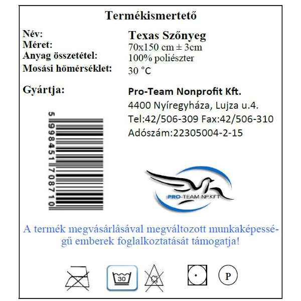 PRO TEAM TEXAS SZŐNYEG 70X150CM
