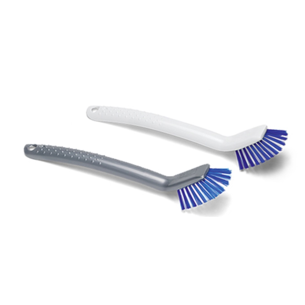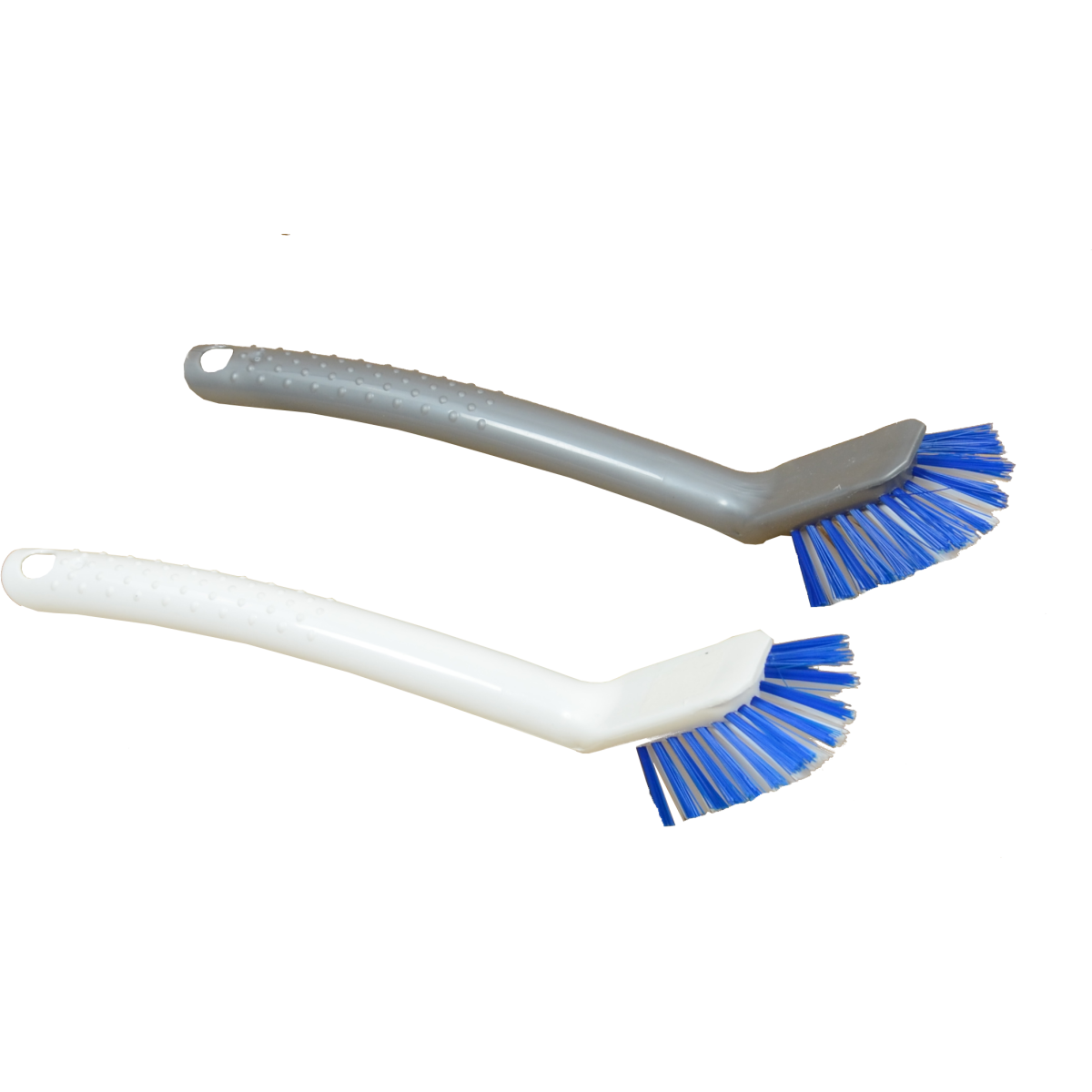 Műanyag, 23 cm-es mosogató kefe kaparóéllel, fehér vagy ezüst színben.