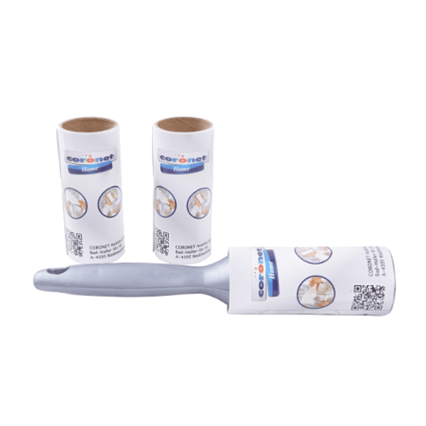 Szösztelenítő henger, készlet tartalma: 1 db henger nyéllel+ 2 tartalék henger.Tisztító szalag hossza: 2 m / henger, nyél: műanyag, nylon tasakban, mérete: 23 cm.