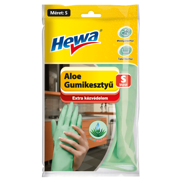 HEWA latex gumikesztyű Aloe Verával, mosogatáshoz, takarításhoz, extra kézvédelem.