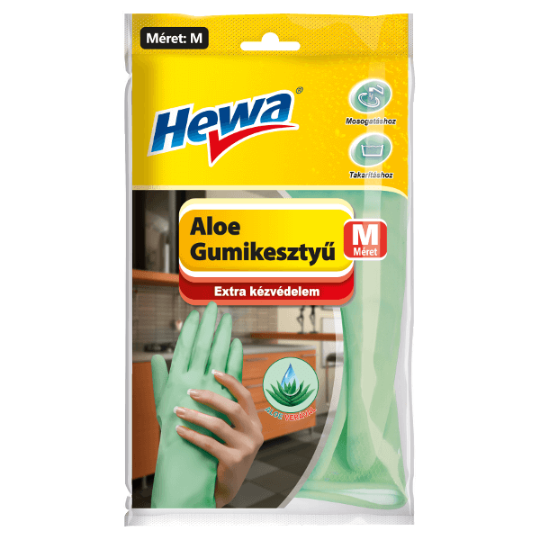 HEWA latex gumikesztyű Aloe Verával, mosogatáshoz, takarításhoz, extra kézvédelem.