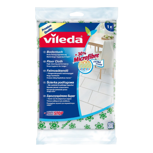A Vileda Zöld felmosókendő 30% mikroszállal bármely felületen használható, legyen szó kőről, csempéről vagy laminált padlóról. Hatékonyan tisztít. A rendkívül kopásálló és tartós kendő erős nedvszívó képességű.