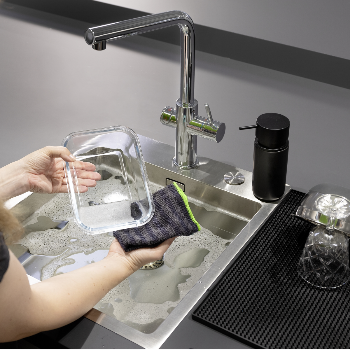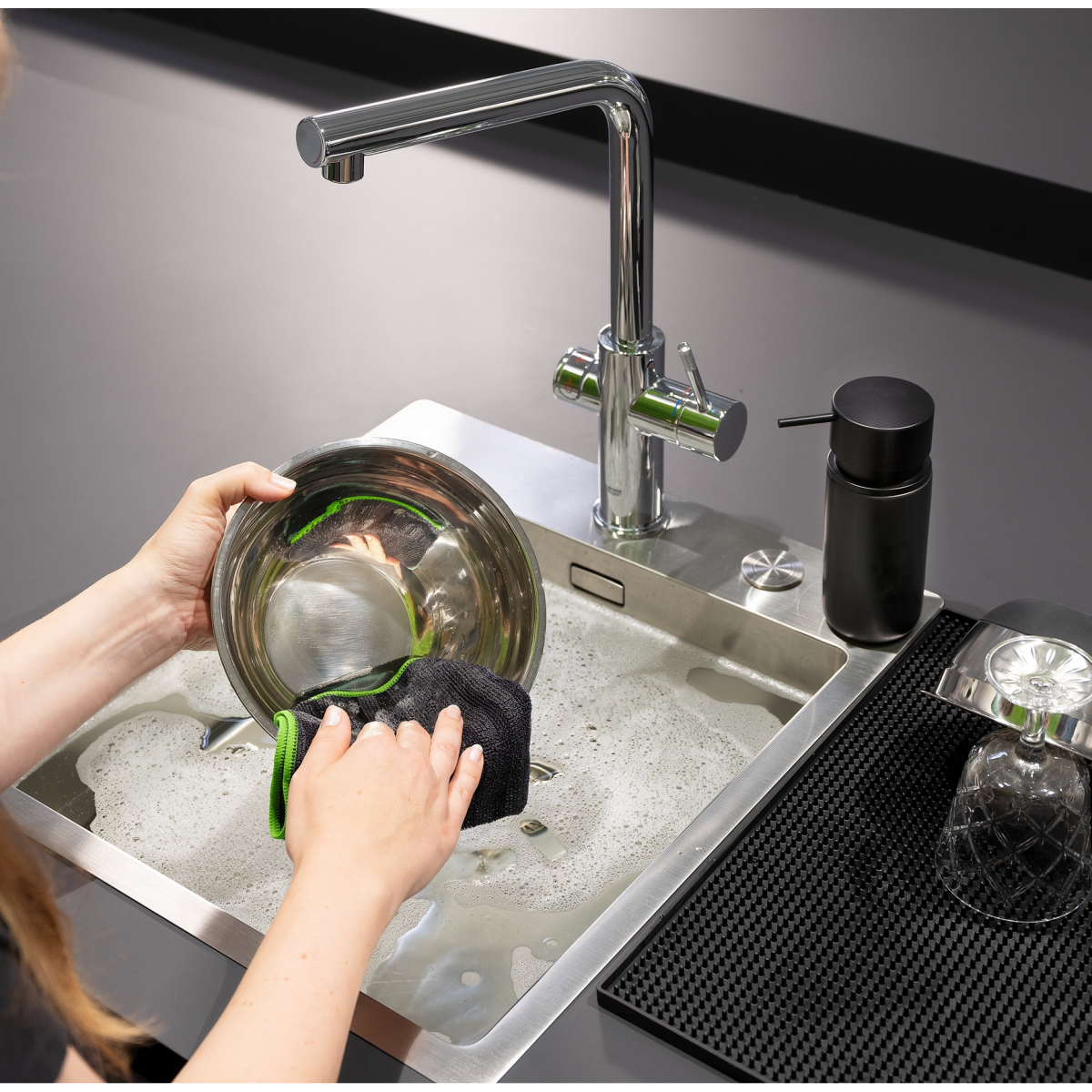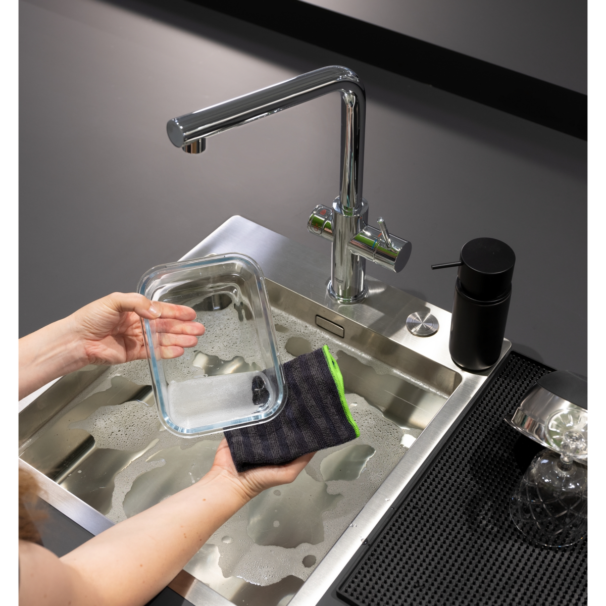 A kendők kifinomult konyhai kiegészítők, amelyek nem hiányozhatnak a BBQ és grill-rendezvények kültéri konyhájából. A WENKO Migro tisztítókendője megbízható tisztítóeszköz a kültéri konyhában. Fekete/szürke színű összeállításával (1 db mikroszálas kendő zöld varrással és 1 db mikroszálas kendő fekete varrással) tökéletesen illeszkedik a fekete kültéri konyha koncepciójába. A két oldallal ellátott tisztítókendő eltávolítja a grillrácson lévő makacs berakódásokat és szennyeződéseket, másik oldalával pedig kíméletesen tisztítja az asztalt. Tisztítószer nélkül használható. A tisztító funkció vízzel való érintkezéssel aktiválódik - nincs szükség mosogatószerre vagy tisztítószerre. Használat után a tisztítókendőt egyszerűen kimoshatja a mosógépben. A 80% poliészterből és 20% poliamidból készült kifinomult kendő portörlőnek, tisztítókendőnek és mosogatórongynak is használható.