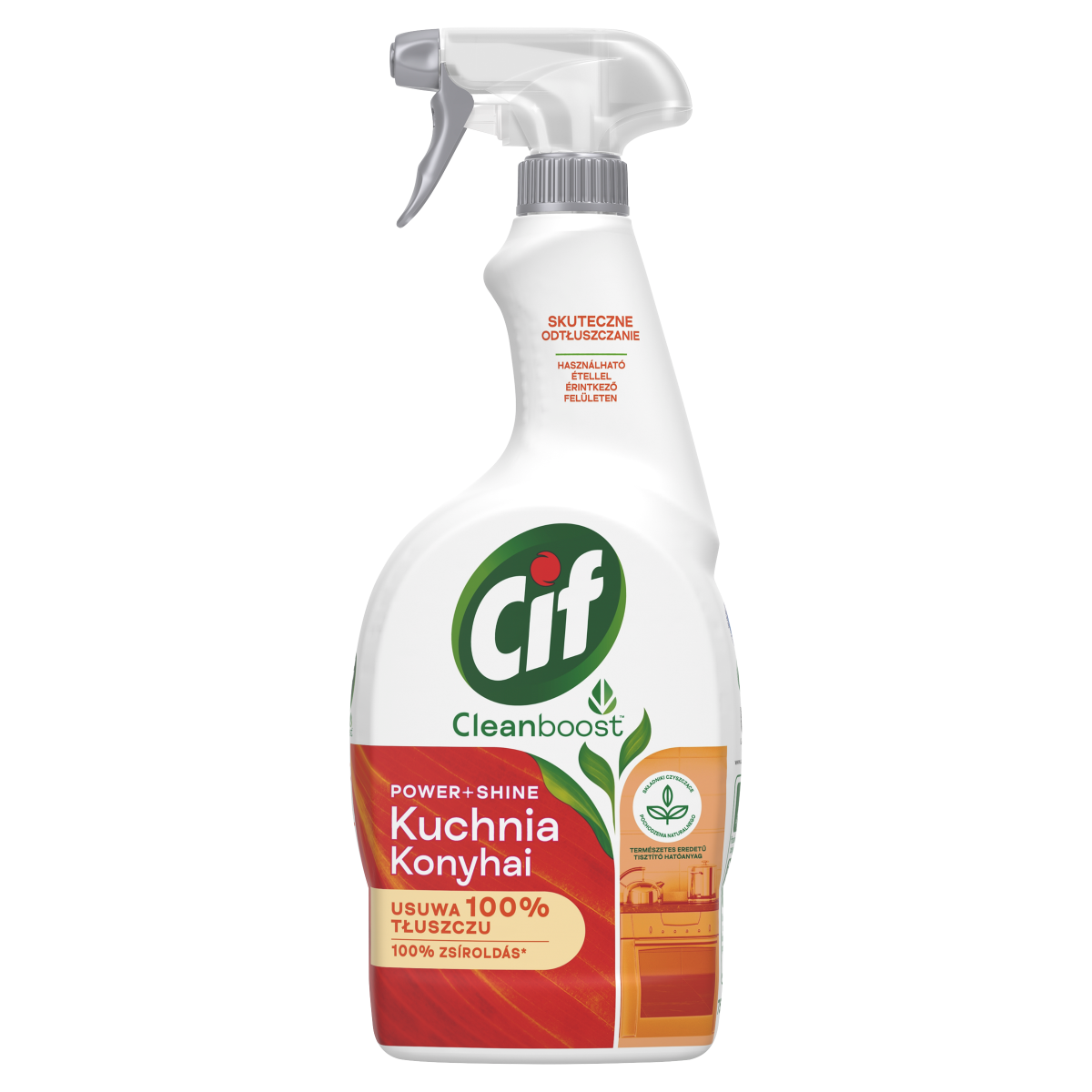 Természetes eredetű tisztító hatóanyagával a Cif Power + Shine konyhai zsíroldó spray hatékonyan eltávolítja a makacs szennyeződéseket, és ragyogóan tisztán tartja a konyhát. Biztonságosan használható étellel érintkező felületeken is.
