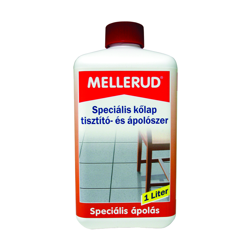 Mellerud speciális kőlaptisztító- és ápolószer 1 literes kiszerelésben, magasfényű, polírozott és matt kőlapokra, mázolt csempére, fényes kőpadlóra javasolt. Eltávolítja a zsíros szennyeződéseket, cipőnyomokat, stb..