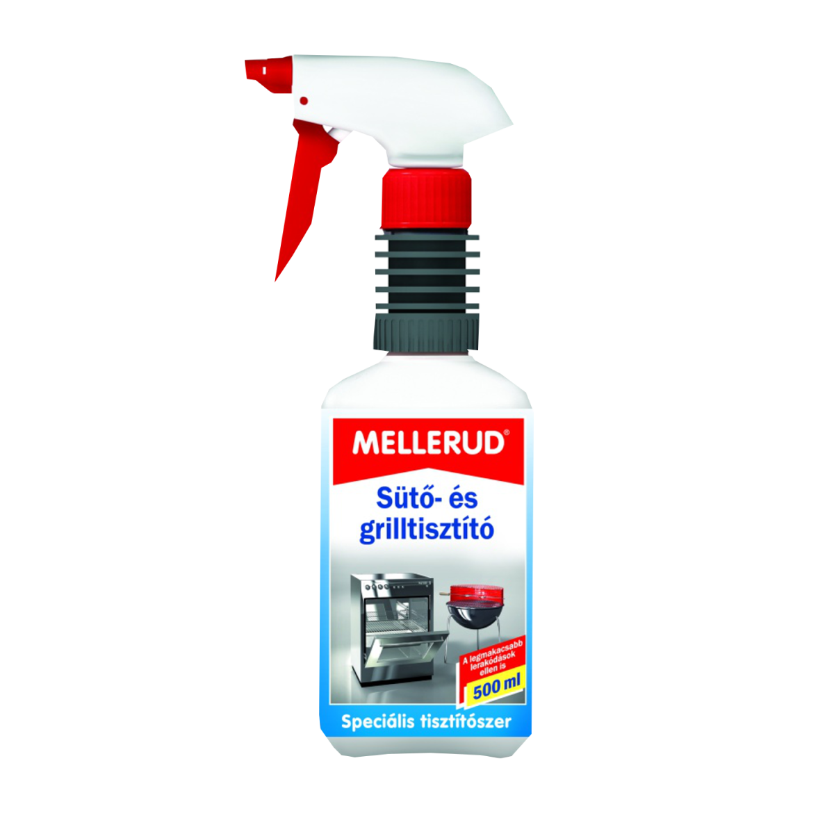 Mellerud sütő- és grilltisztító, 0,5 l, sütők, sütőlapok, tepsik, grillezők, grillrostélyok, tűzhelyek, főzőlapok tisztítására, eltávolítja a ráégett zsírt és egyéb lerakódásokat, a termék csak kihűlt felületen alkalmazható.
