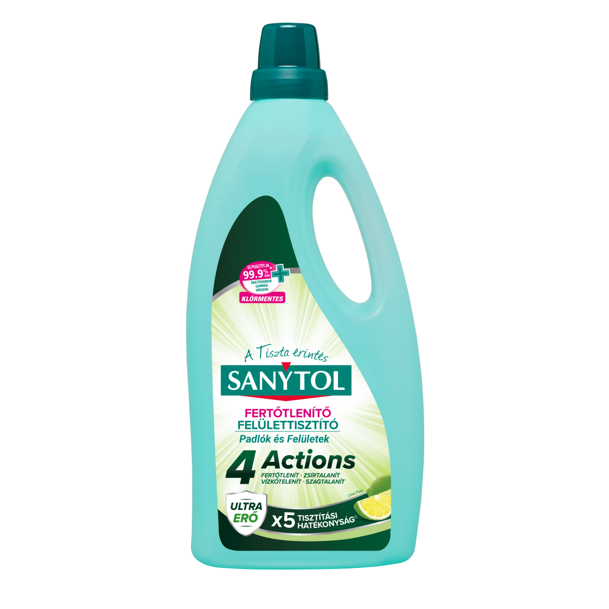A Sanytol 4ACTIONS univerzális fertőtlenítő tisztítószer hatékonyan tisztítja, zsírtalanítja és fényessé teszi otthona minden felületét. Bőrgyógyászatilag tesztelt. A klór nélküli hármas hatású tisztítószer hatásos a baktériumok, gombák és vírusok ellen miközben megszünteti a kellemetlen szagokat is. 7 napos védelemmel a penészgomba kialakulásával szemben.