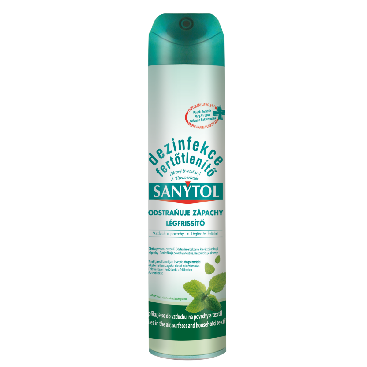 Sanytol légfertőtlenítő aerosol, 300ml-es kiszerelésben. Hármas hatást kínál: 99,9%-ban elpusztítja a baktériumokat, vírusokat, gombákat. Klórmentes, megszünteti a kellemetlen szagokat, kellemes és tartós illatot hagy maga után: a levegőben, a felületeken és még a ruhákon is. Nem hagy foltot.